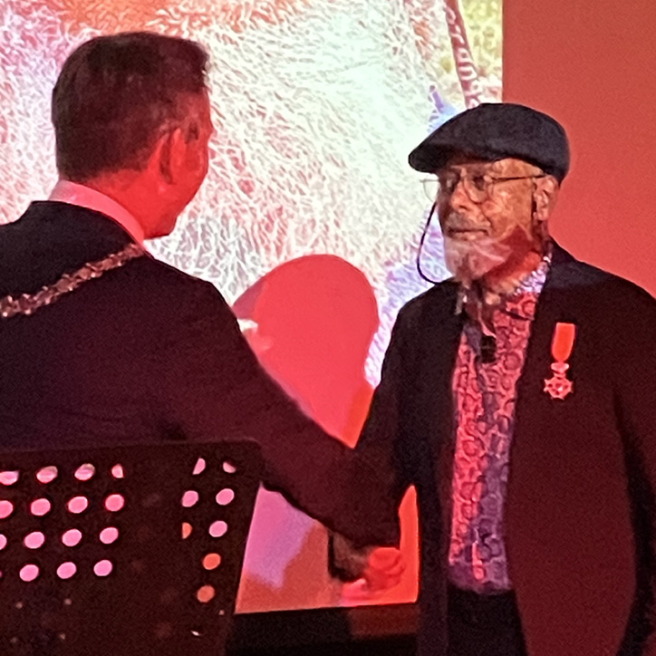 In his speech, Mayor Rog praised him as a man "who doesn't talk about participation, but embodies it." In 1997, Cadat-Lampe was one of the forces behind the foundation of the world's first Online Discrimination Reporting Center and played a key role in establishing the Makassarplein community in Amsterdam, which restored the livability of a vulnerable neighbourhood. He has been a board member of the Indische Buurt Neighbourhood Museum since 2017 and of the Haarlem World Cuisine Foundation since 2021, where he is committed to connecting people from diverse backgrounds.